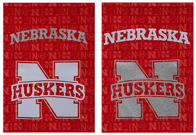 Nebraska Cornhuskers Flag Garden Style Suede Glitter Accented CO