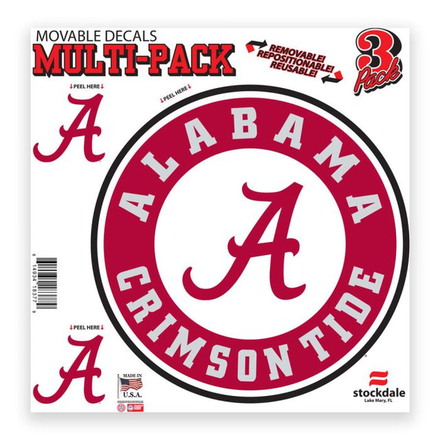 Paquete múltiple de calcomanías para todas las superficies de Alabama Crimson Tide, 12" x 12"