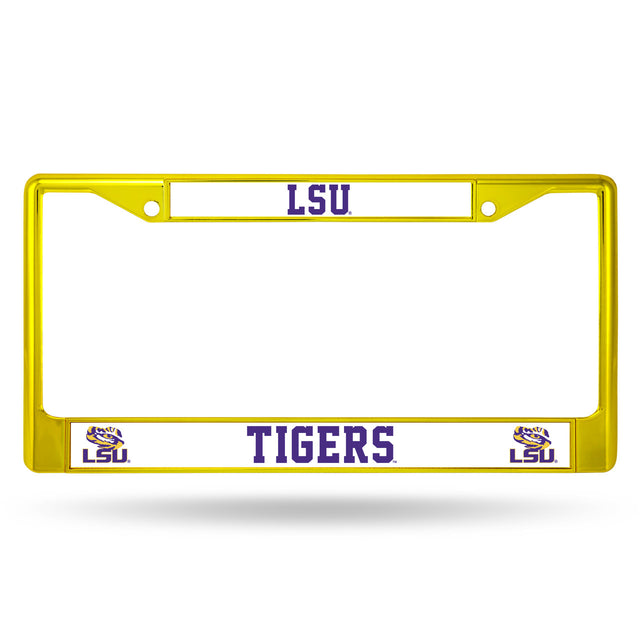 Let everyone know who you're rooting for with this Color Chrome License Plate Frame from Rico Industries! This frame is officially licensed and easy to mount on just about any license plate. The frame measures at 12 x 6 with plastic team inserts at the top and bottom of the frame. Its decorated in vibrant team colors and its Zinc Metal construction makes it resistant to the elements. Louisiana State/9474696490/94746964900/_c_